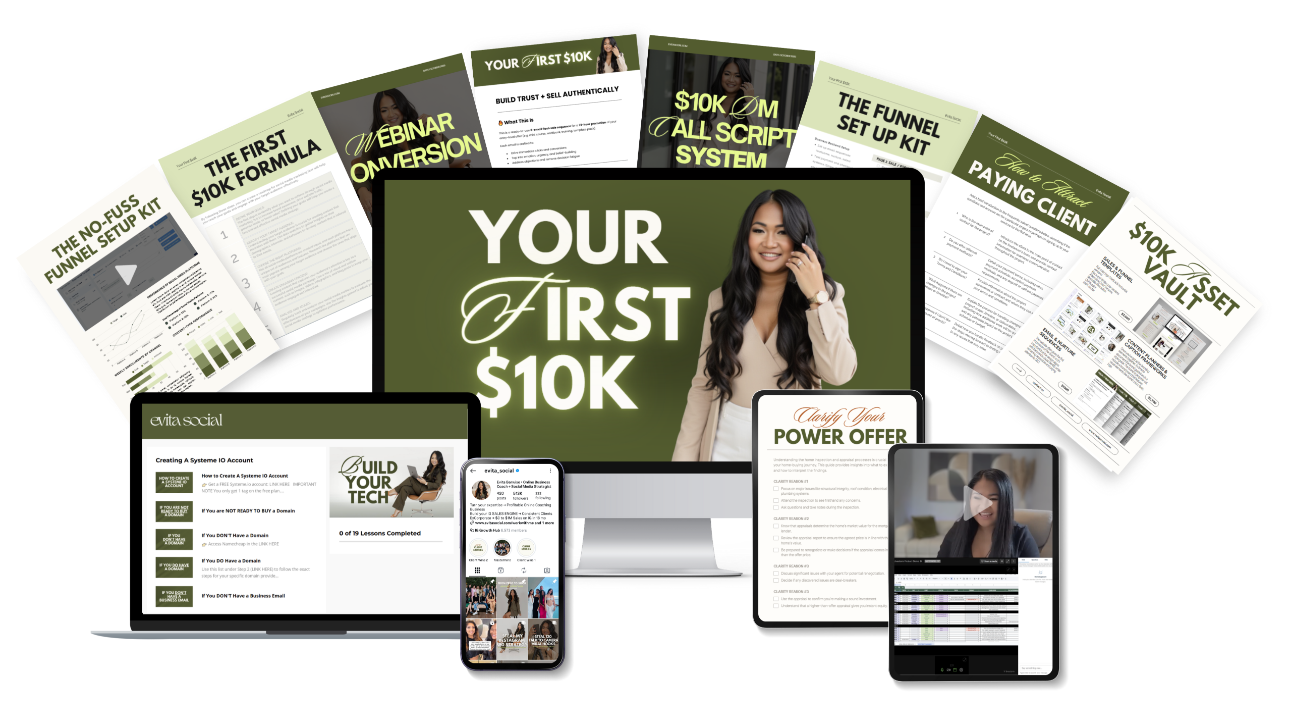 The First $10K Formula – A step-by-step roadmap to make your first $10K online — without guessing or overbuilding. Learn how to package your expertise, attract clients, and build a system that sells. ($2,000 value!)